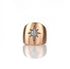 The Shield Diamond Ring is a bold declaration of strength and elegance, featuring 0.12ct diamonds in a celestial design set against a smooth, matte gold surface with black rhodium accents. Crafted for both comfort and style, this ring is a timeless symbol of resilience and empowerment.